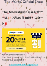 The Mörks' Official Shop The Mörks 結成3周年記念セール‼️7月30日18時〜スタート‼️